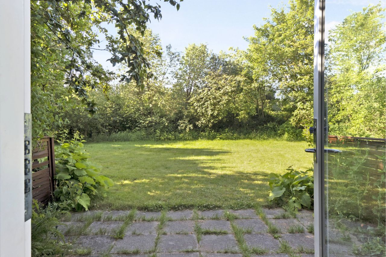 - hyggelig stue m/trægulve, brændeovn og udgang til grunden