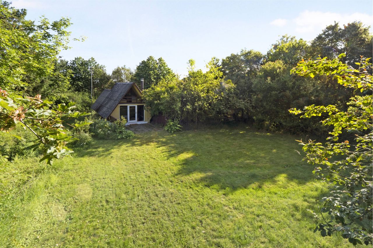 Fritidshuset er beliggende roligt bagerst i området og alligevel i gå-afstand til den populære strand.