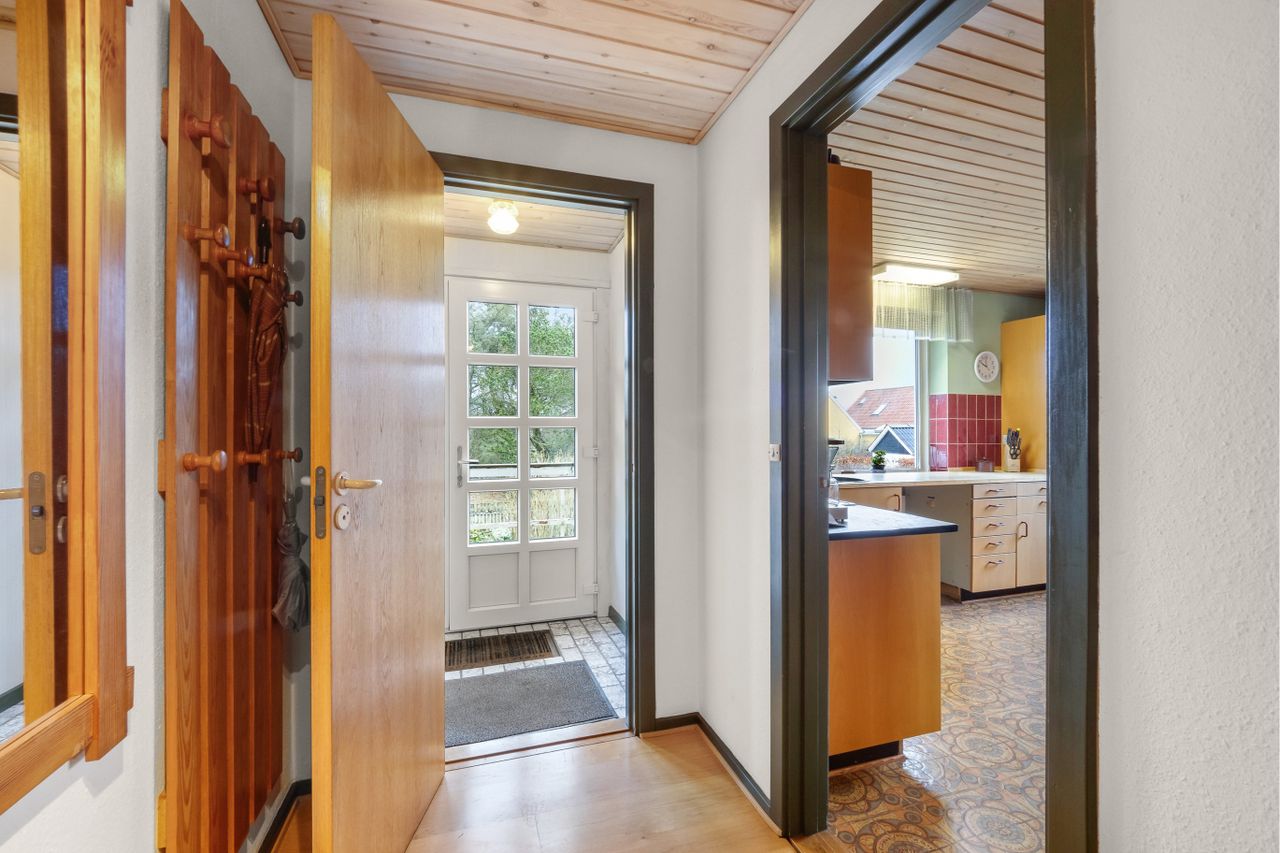 Indendørs venter jer flere gode kvadratmeter fordelt på to plan. Her træder I direkte ind i entréen, som