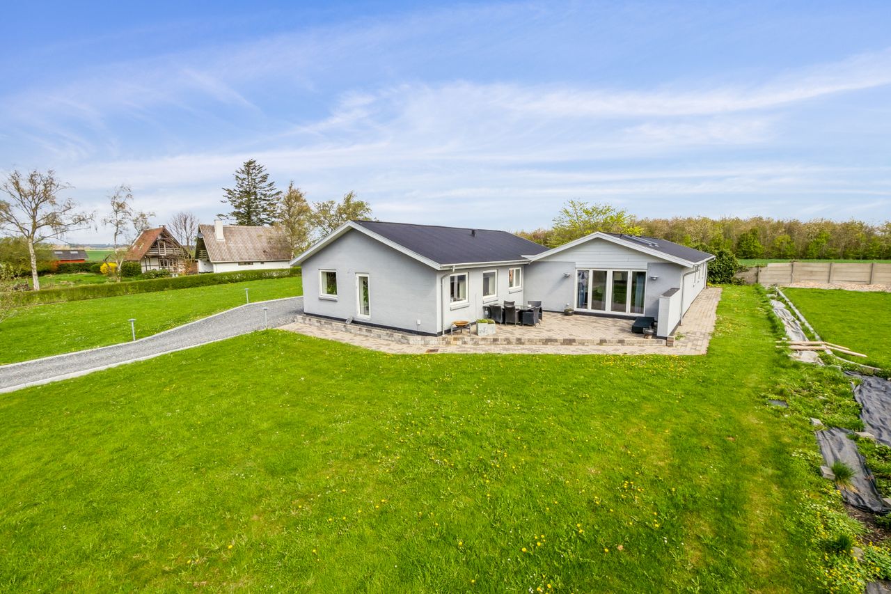 Velkommen til Skånings Alle 16 - en renoveret villa i 1 plan på lukket vej tæt på havn, strand og indkøb - Her får I en rummelig villa med 221 m2 med plads til hele familien eller gæster.