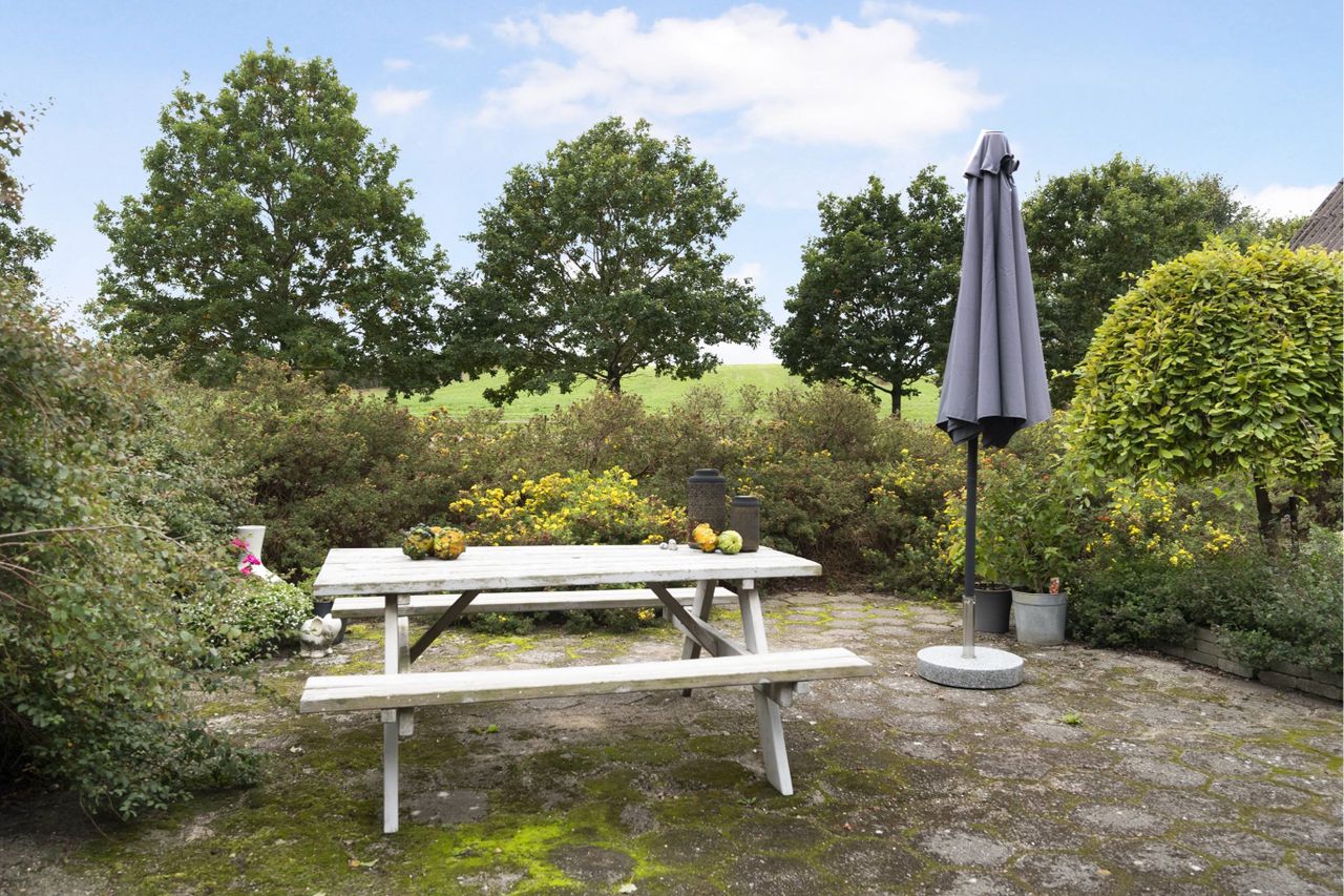 Fra stuen kan I træde ud på en stor terrasse, der prydes af blomster og grønne buske og som fortsætter rundt om hjørnet, hvor I kan følge solens stråler på de dejlige sommerdage. Her er noget af terrassen samtidig overdækket af en skøn altan fra 1. sal, hvorpå I kan nyde den dejlige morgensol.