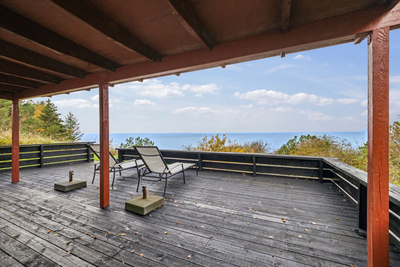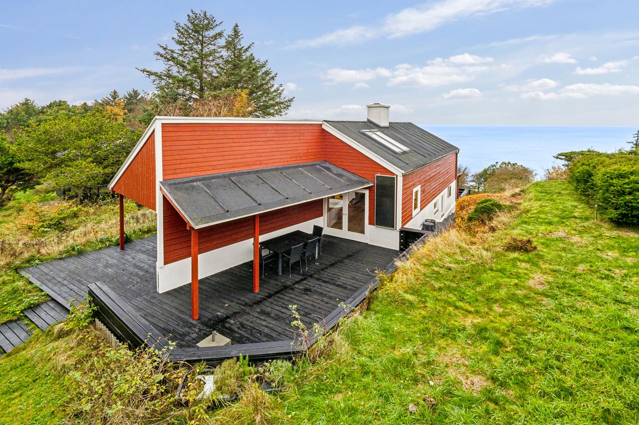 Dette sommerhus er beliggende på Furs nordside og beliggenheden er helt sublim. Huset ligger højt og yderst privat med høje træer og natur omkring sig, mens grunden på 4.825 m2 går helt ned til vandet. Fra flere af de mange gode terrasser kan den fantastiske 180 graders udsigt til Thy og Mors, samt naturens forandringer gennem årstiderne nydes.