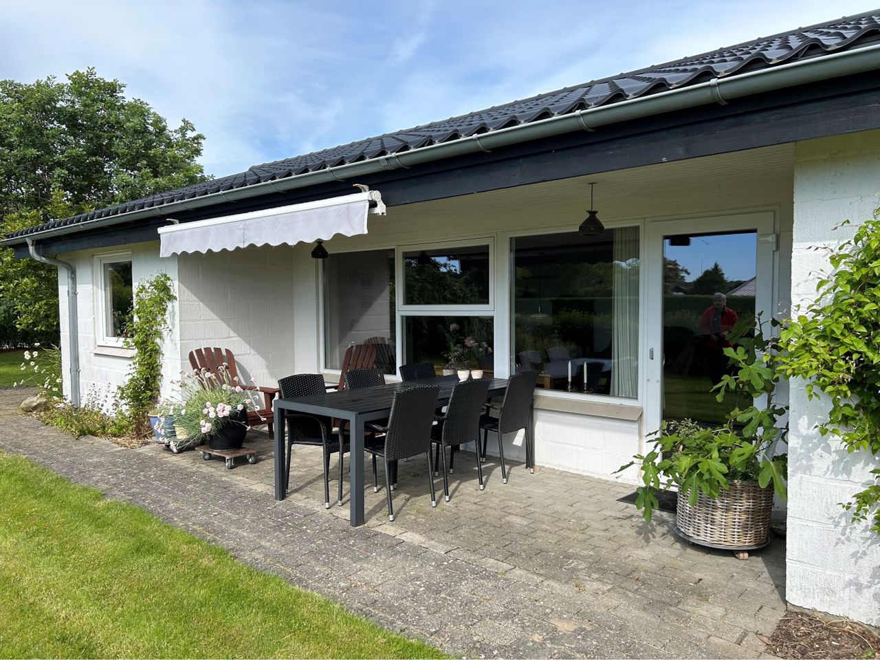 brændeovn (installeret i 2022) og udgang til dejlig overdækket terrasse, hvor mange timer kan nydes.