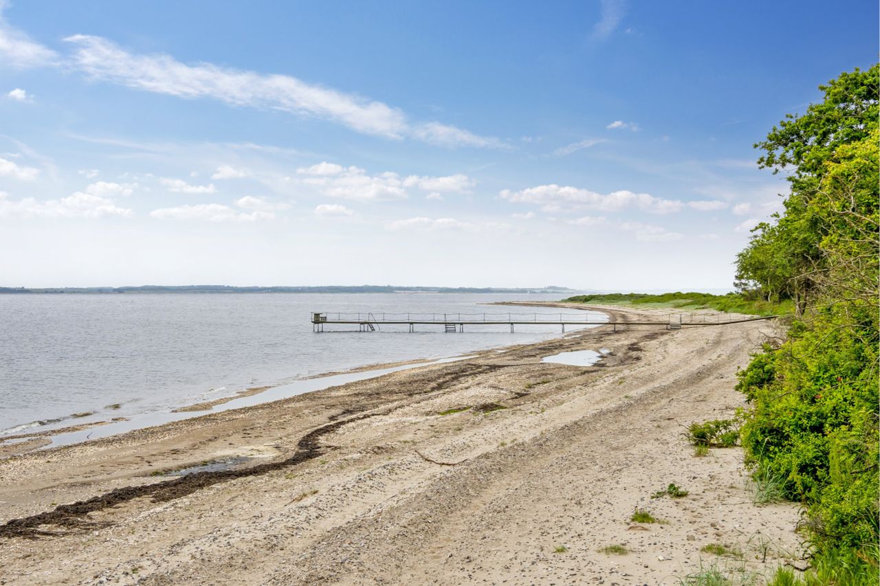 Den børnevenlige strand indbyder til ophold, leg og vandring.