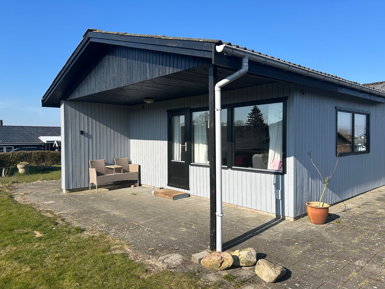 På den nordøstlige side af huset findes dejlig overdækket terrasse hvor der skal søges skygge på solrige dage eller læ for regnvejr. Fra den overdækkede terrasse er der adgang til have med plæne med plads til udendørsaktiviteter og som er omkranset af levende hegn.