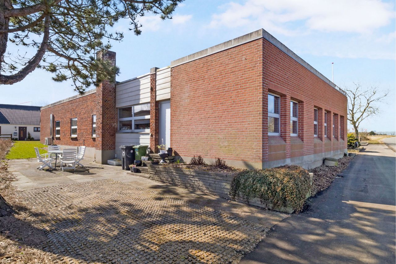 Ejendommen er opført i 1970 og ombygget i 2017 i nydelige røde sten med paptag.